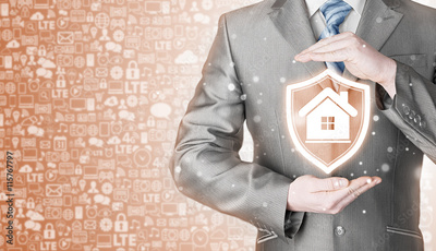 House protection and insurance. Home shield. Real estate safety. Icons background. Communication and Internet concept.