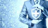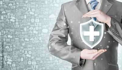 Health protection and insurance. Medical healthcare. Business in health safety. Icons background. Communication.