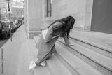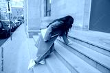 the woman falls on the stairs