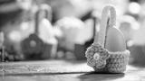 Brightly colored miniature crocheted baskets hold individual eggs, each basket adorned with a dainty flower detail, making them perfect for Easter celebrations.