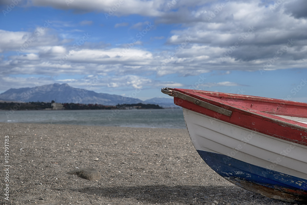 Barcas de pesca a la orilla de una playa del mar mediterráneo