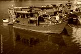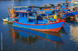 There are many traditional Vietnamese fishing boats and vessels in the bay on the river at Vinh Truong Fishing Port in Nha Trang, Vietnam