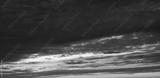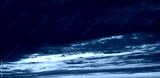 Blue clouds on a cloudy dark orange sky in the evening at sunset