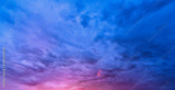 purple clouds in a cloudy blue sky at sunset in the evening. Dramatic beautiful sky