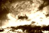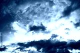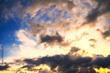 cloudy sky with clouds at sunset. Background of the orange blue sky at sunrise