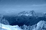 Marmolada glacier from over 3000 meters above sea level and the mountain group of Sasso Lungo is sold above the green meadows of Col Rodella