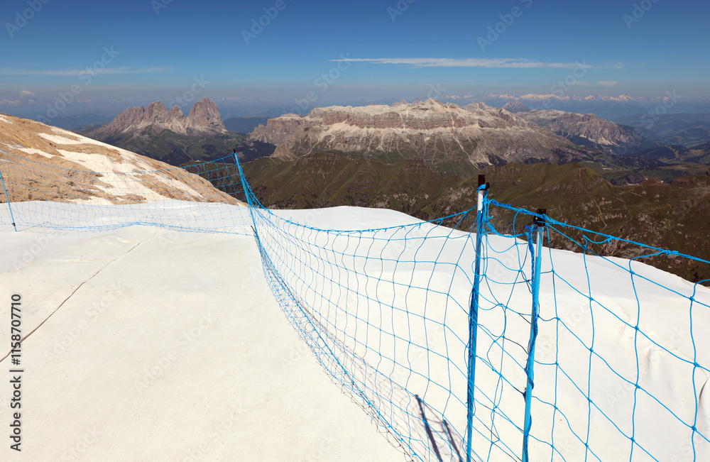 safety net installed on the Marmolada glacier in the European Alps on the Dolomites in Northern Italy and the mountains