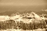 fabulous panoramic view of the sass pordoi mountain group in the dolomite ranges of the european alps in italy during summer