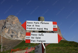 wooden arrows with directions to alpine refuges and mountains in Italian without people