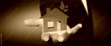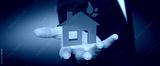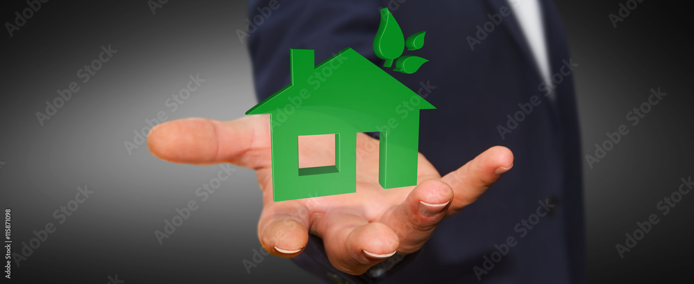 Businessman holding 3D eco house and energy efficiency