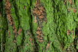 Tree bark with green moss close-up texture