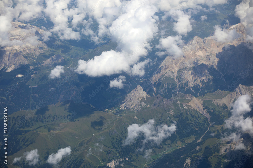 view of the European Alps with the Marmolada mountain whose peak reaches over 3300m