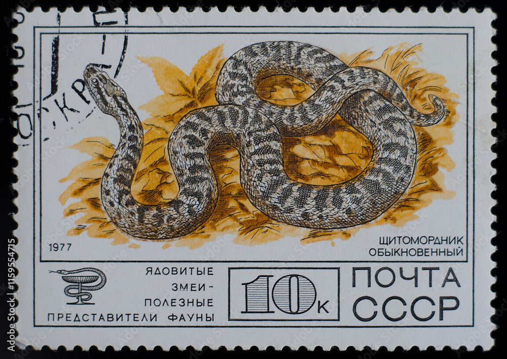 Postage stamp, USSR, 1977, poisonous snakes, useful representatives of fauna