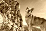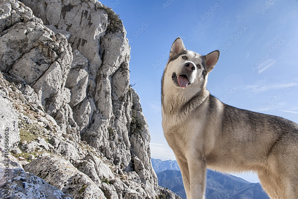 hermoso perro de Raza alaskan malamute color gris lobo