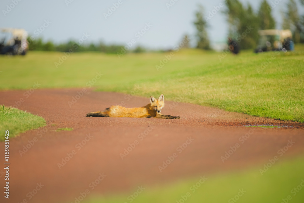 Younge fox standing in walking path
