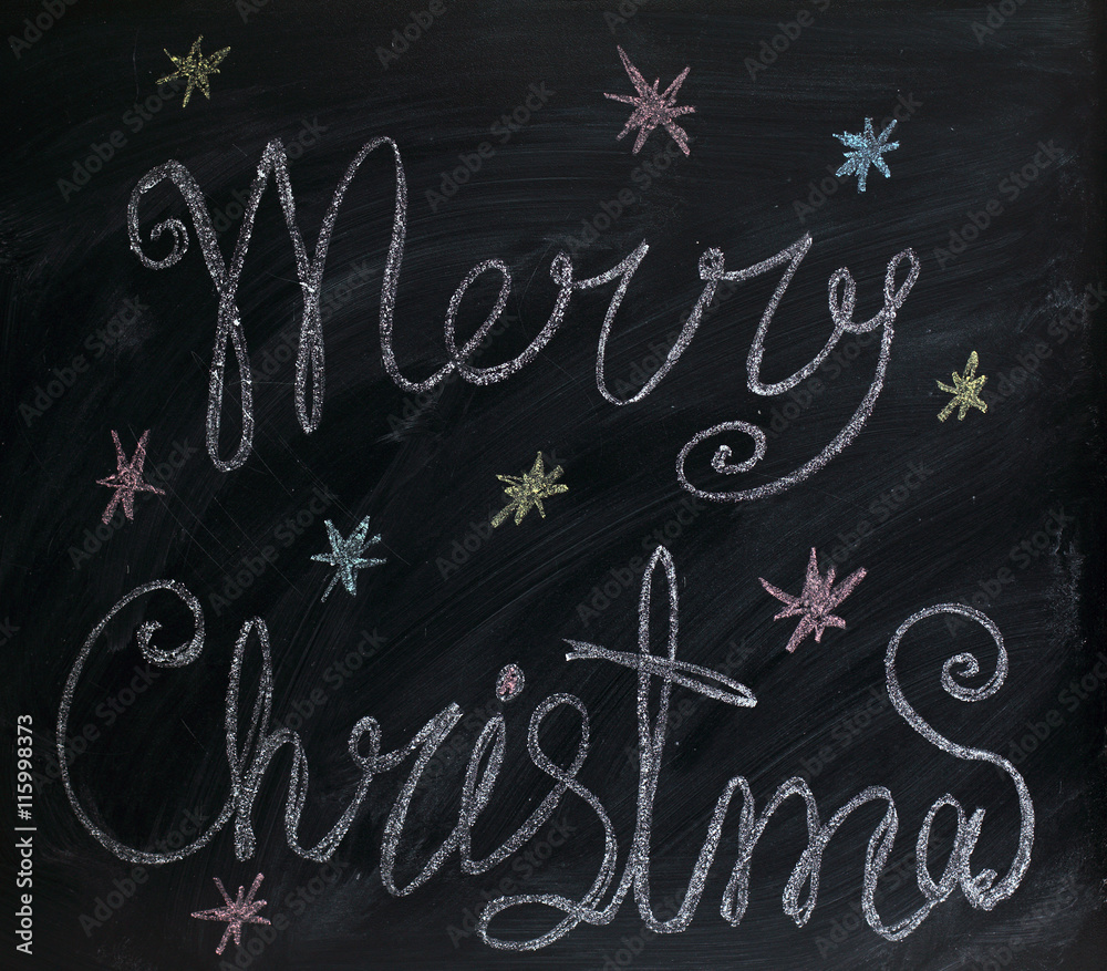 holiday background/ greetings Merry Christmas painted by with chalk on blackboard