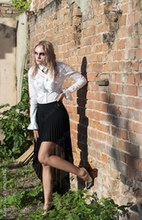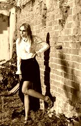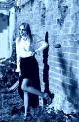 An outdoor fashion gothic style portrait of a beautiful blonde girl
