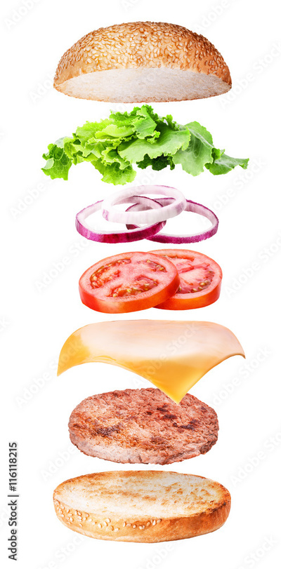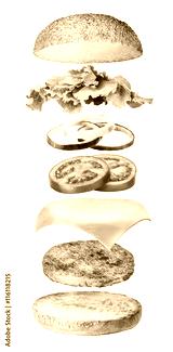 Flying burger ingredients isolated