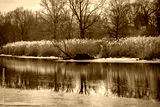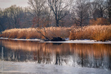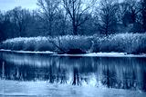 New England Winter Landscape over the Mill River, East Rock Park in New Haven, Connecticut, USA