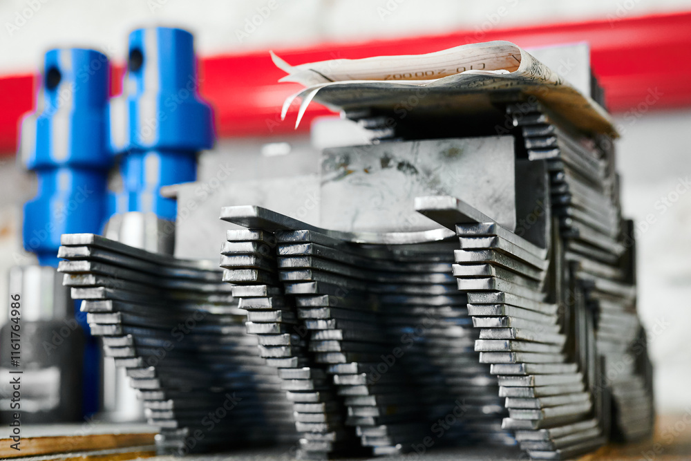 New metal components stack in production plant storehouse