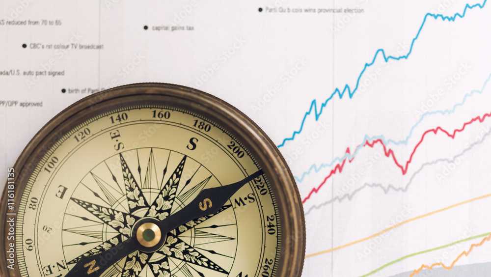 A compass on charts. A direction of success