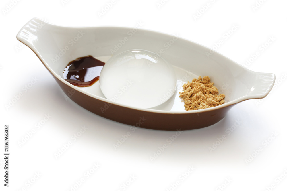 water cake, raindrop cake, mizu shingen mochi, homemade japanese summer dessert isolated on white background
