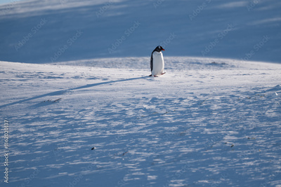 Gentoo penguin in Antarctica. Wild nature. Snow. South Pole