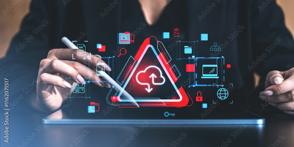 Digital interface showing cloud storage security concept with glowing icons.