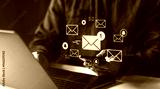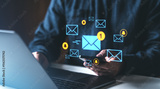 Digital communication concept with email notifications and icons.
