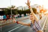 Young woman trying to catch a taxi