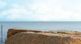 Rock Sea stone texture on blue ocean, cloud sky background,Aerial view Edge Cliff Rock natural stone mountain by sea beach in sunny day summer,Rock Stone Podium for Product Design Backdrop Background
