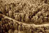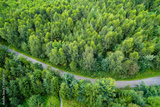 View from the observation tower at Möhnesee of the surrounding green landscape. Nature at Möhnesee. Aerial view of the path through the forest.