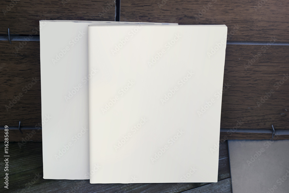 Mock-up magazine and catalog, cover for your design. Most realistic covers on wood background.