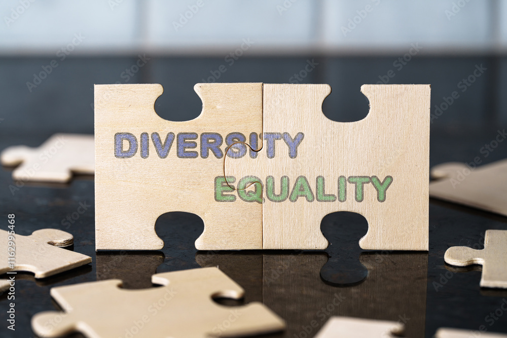 Diversity, Equality, Civil Rights, Interlocking Wooden Puzzle Pieces, Tolerance