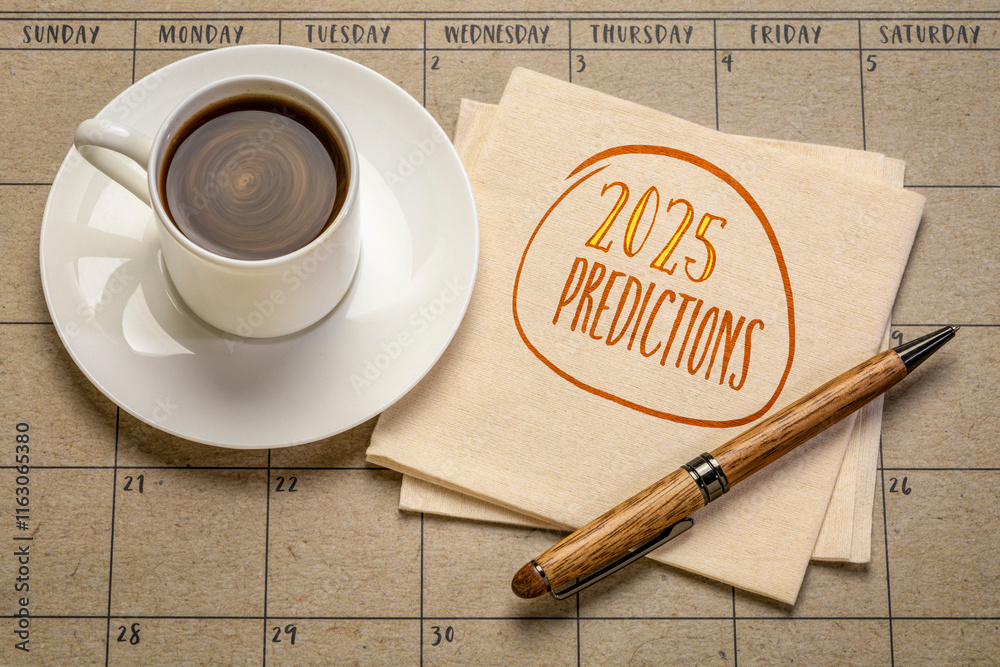 2025 predictions - handwriting on a napkin with a cup of coffee, business and financial trends and expectations in New Year