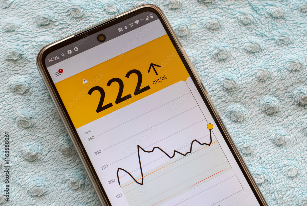 high blood sugar, glucose alarm for diabetics. blood glucose monitoring in the smartphone app