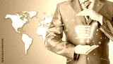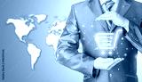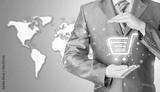 Consumer protection concept. Safety and insurance of trade and goods. Online marketing. World map background. Worldwide protection.