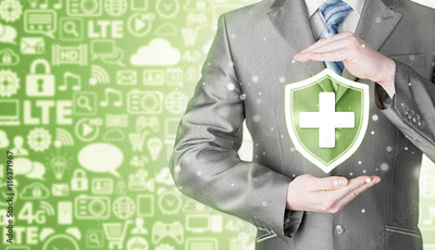 Health protection and insurance. Medical healthcare. Business in health safety. Icons background. Communication.