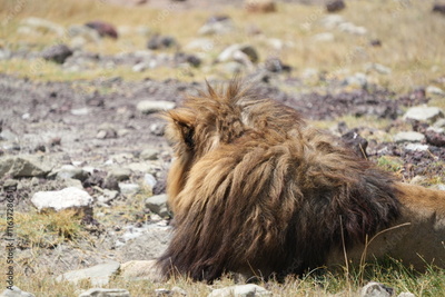close up of a male lion laying down in the Ngorongoro crater Tanzania, older male, mane,