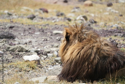 close up of a male lion laying down in the Ngorongoro crater Tanzania, older male, mane,