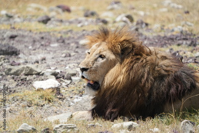 close up of a male lion laying down in the Ngorongoro crater Tanzania, older male, mane,
