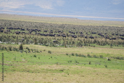 gnus (wildebeest) grazing in the Ngorongoro crater in tanzania