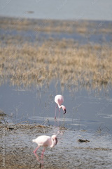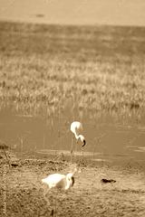 flamingos in the lake of the ngorongoro crater in tanzania, safari, wildlife