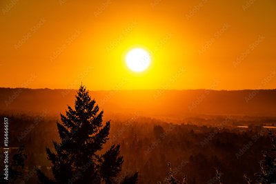 Orange Sun Going Down West Hills in Portland Oregon Sunset