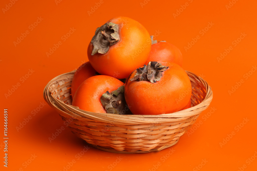 bowl of persimmon on orange background