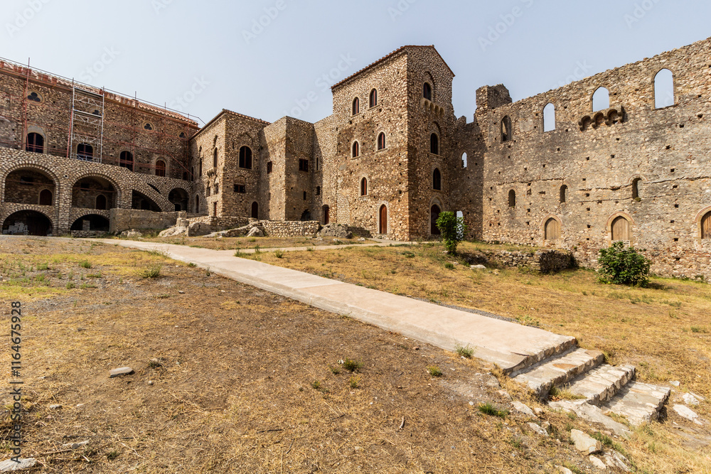 Palace complex at Mystras ruins on Peloponnese peninsula, Greece