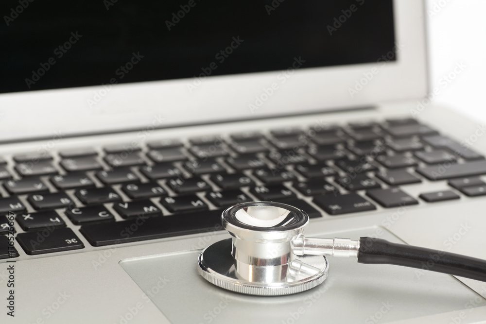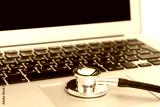 Medical stethoscope on a laptop computer