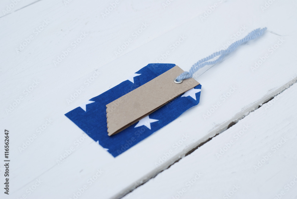 Mock-up blue and red label on the front of a white board