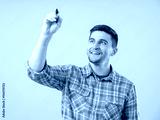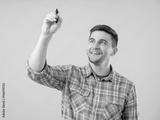 Young man drawing with marker