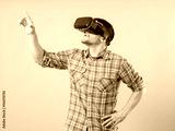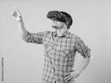 Man with virtual reality glasses showing gesture